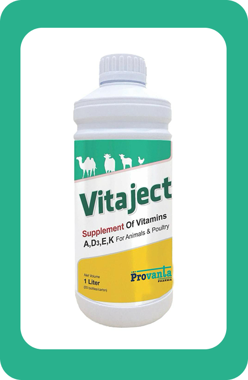 APA VITAJECT is a comprehensive preparation to enhance natural protective mechanism and improves physiological resistance against infections. APA VITAJECT stimulate reproductivity and normal growth, improves resistance against infection, enhance growth o f intestinal microflora for better feed intake, absorption and digestion. It improves egg production, support breeders,helps to overcome stress, improve endurance activity and strengthen udder tissues and muscles